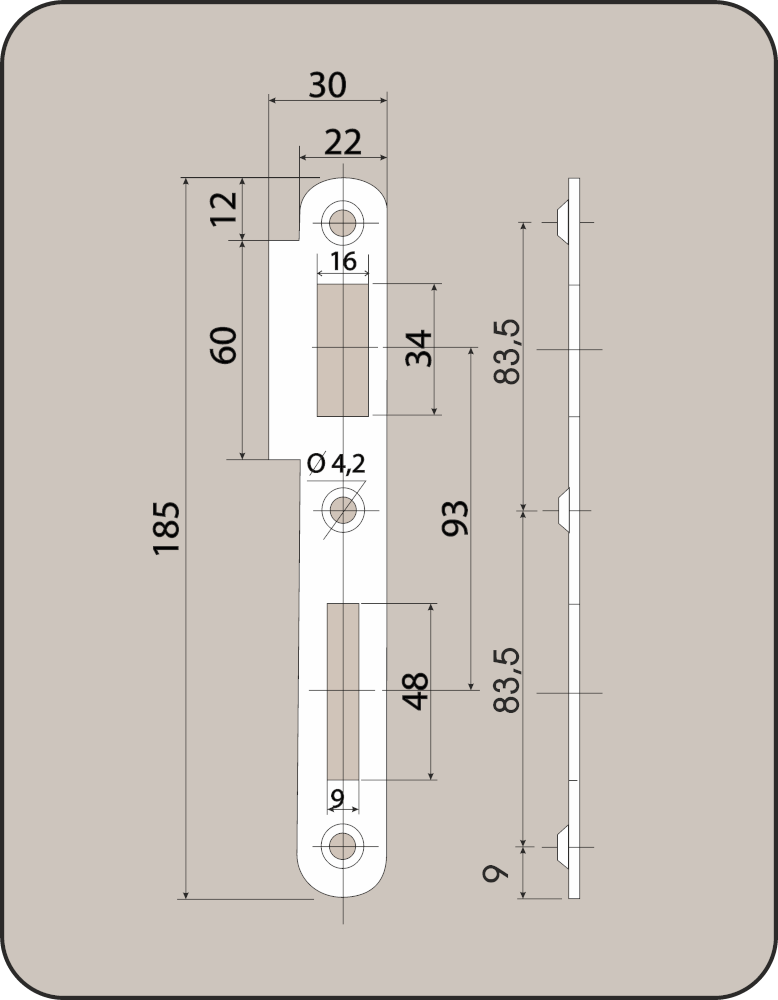 Plech zapadací rovný 90 LEVÝ, rozteč 93mm, délka 185mm, šířka 30mm, povrchová úprava bílý zinek