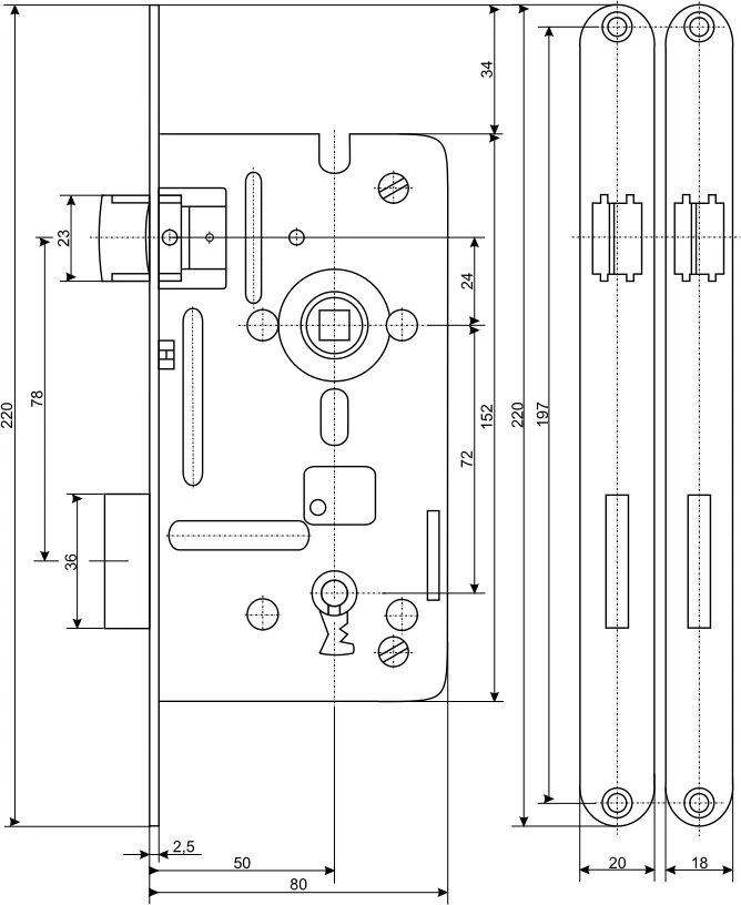 Zámek TESLA K8072/50 klasický, rozteč 72mm, hloubka zádlabu 80mm, šířka čela 20mm, backset ( hloubka klíče,kliky od čela ) 50mm, zámky je možné měnit pravý / levý, povrchová úprava bílý zinek, nejsou určené pro požární/kouřové dveře k únikovým východům