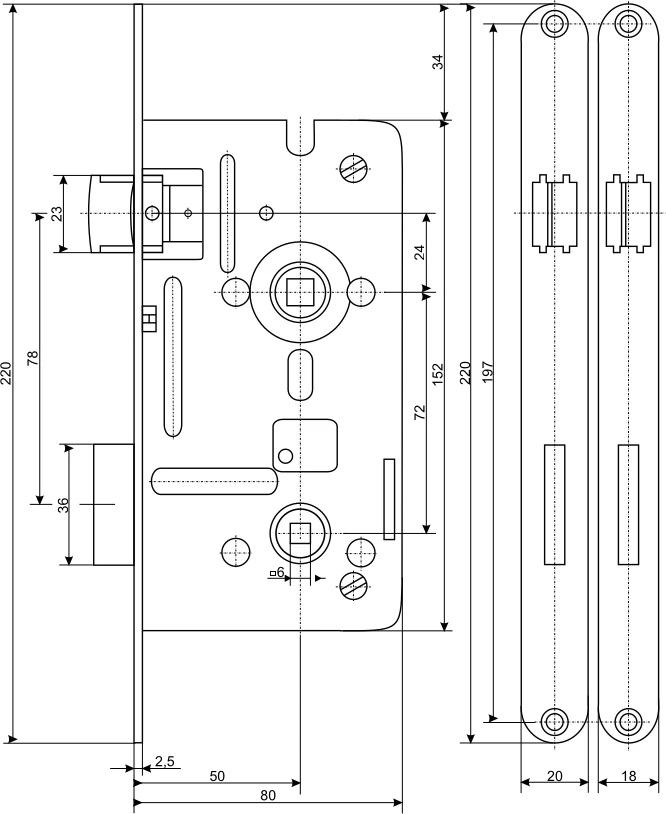 Zámek TESLA WC8072/50 ořech 6x6, rozteč 72mm, hloubka zádlabu 80mm, šířka čela 20mm, backset ( hloubka klíče,kliky od čela ) 50mm, zámky je možné měnit pravý / levý, povrchová úprava bílý zinek, nejsou určené pro požární/kouřové dveře k únikovým východům