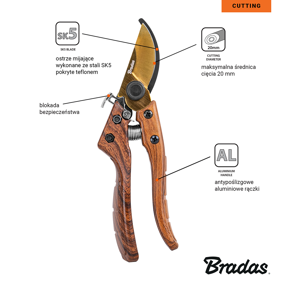 Nůžky zahradnické V1036 WOOD 20cm SK5 BRADAS