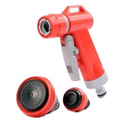Rozstřikovací pistole + 2 nástavce vyměnitelné (sprcha a spořič), čep rychlospojky